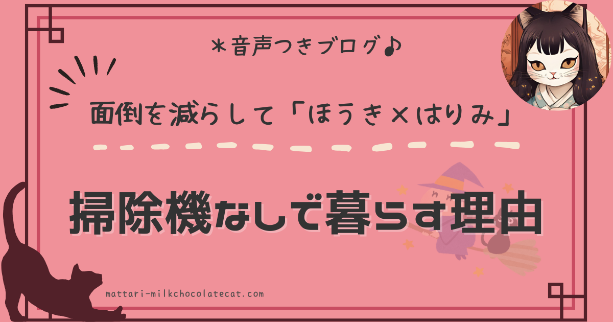 私もまさに同じ。そこで「掃除機ありき」をいったん手放して、“面倒を減らす”前提で掃除観を組み替えました。結果、私には 「ほうき×はりみ」 がぴったり。